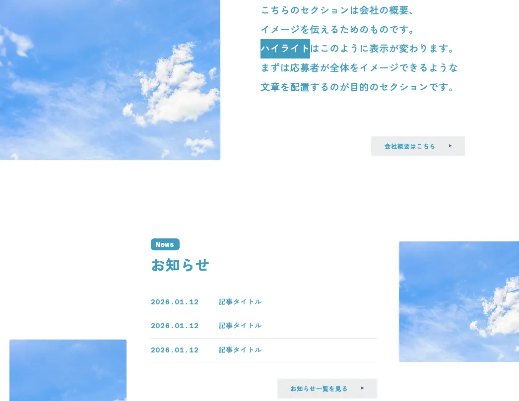 ベースはテンプレートですが、企業ごとに内容やトーンに合わせてデザインを調整します。 その場しのぎの構成ではなく、複数の案件を通して検証・改善を重ねてきた、onWhite独自の設計をもとにしたテンプレートです。
